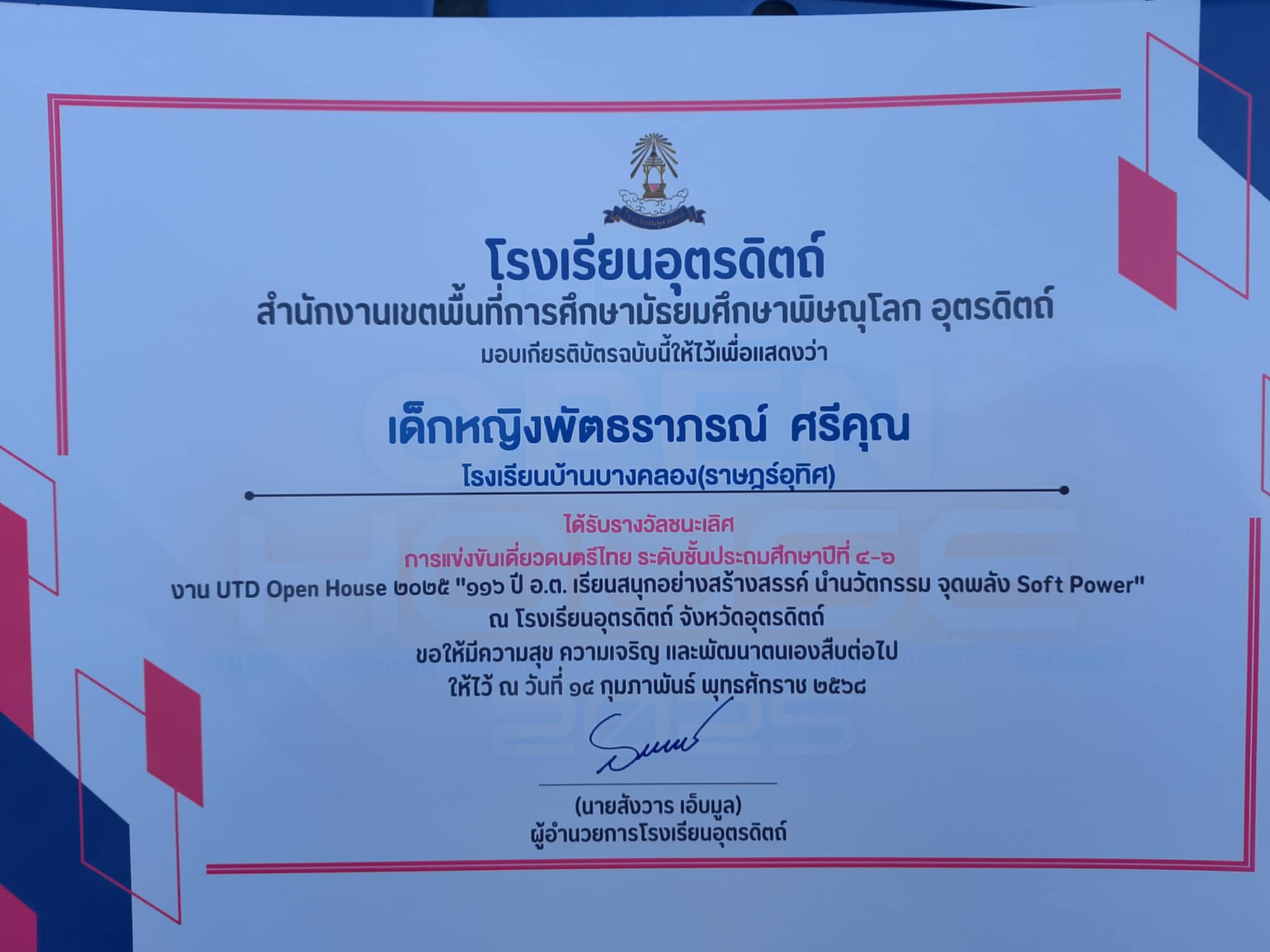 (เหรียญทองชนะเลิศ) การแข่งขันเดี่ยวดนตรีไทยทุกประเภท เนื่องในงาน 116 ปี โรงเรียนอุตรดิตถ์